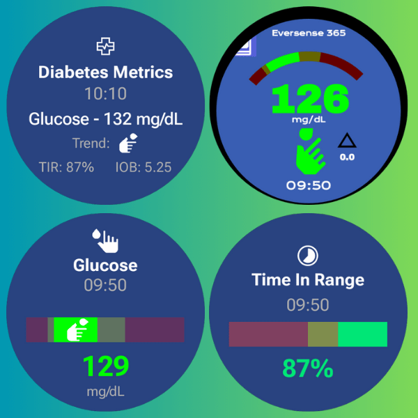 Purpose-built watch faces designed around diabetes data—not retrofitted widgets. Glucose, insulin, and trend arrows are integrated directly into the face for true at-a-glance awareness.